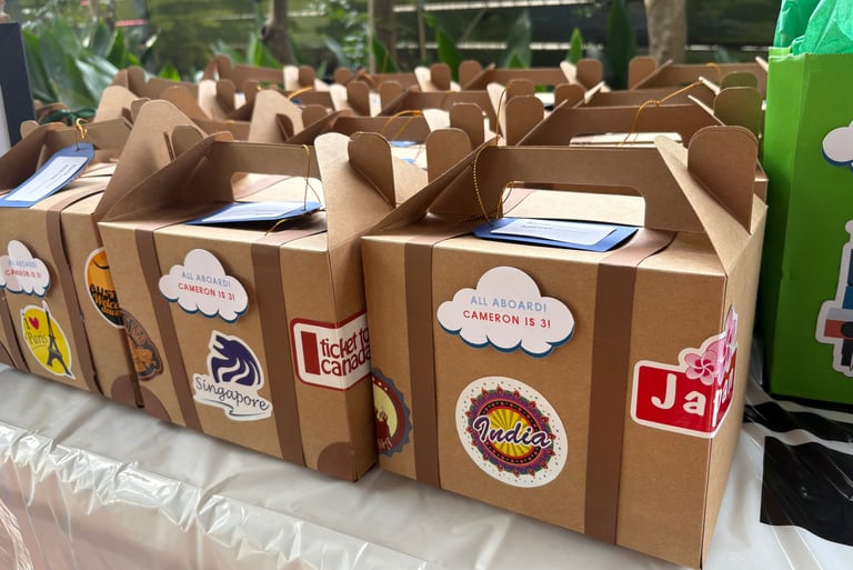 As the party winds down, send your little guests home with Thomas-themed goodie bags or suitcase boxes filled with small toys, stickers, and sweets. Some other items to include are a passport notebook, train toothbrush and toothpaste. Another nice touch is to provide a thank-you note that features an image of Thomas, reminding them of the fun they had at the party!